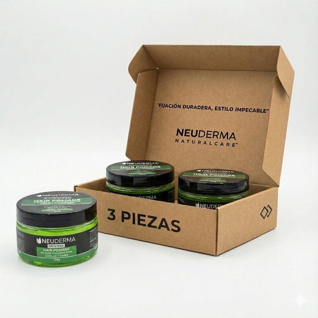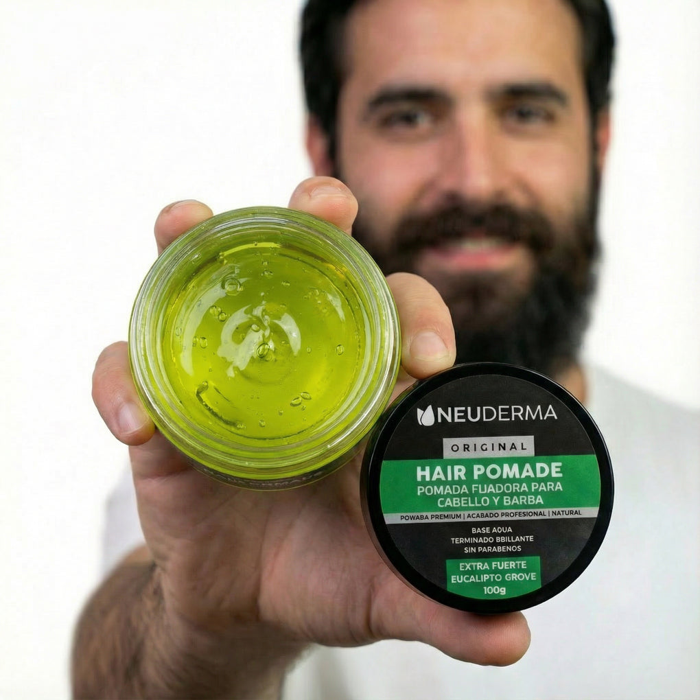 Estilo que se siente tan fresco como se ve. El Kit de 3 Pomadas Neuderma Verde Eucalipto Grove está diseñado para quienes buscan fijación, frescura y personalidad en su rutina diaria. Con una fijación extra fuerte y un aroma herbal revitalizante, esta fórmula combina lo mejor del cuidado capilar con ingredientes frescos y funcionales — para mantener tu look intacto sin sacrificar la salud de tu cabello. ✨