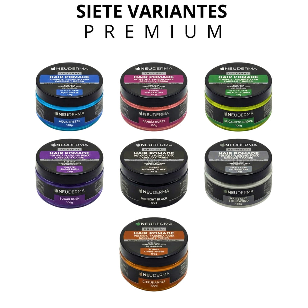 Kit Completo de Pomadas Neuderma - 7 Fragancias, 7 Estilos - 100 g c/u