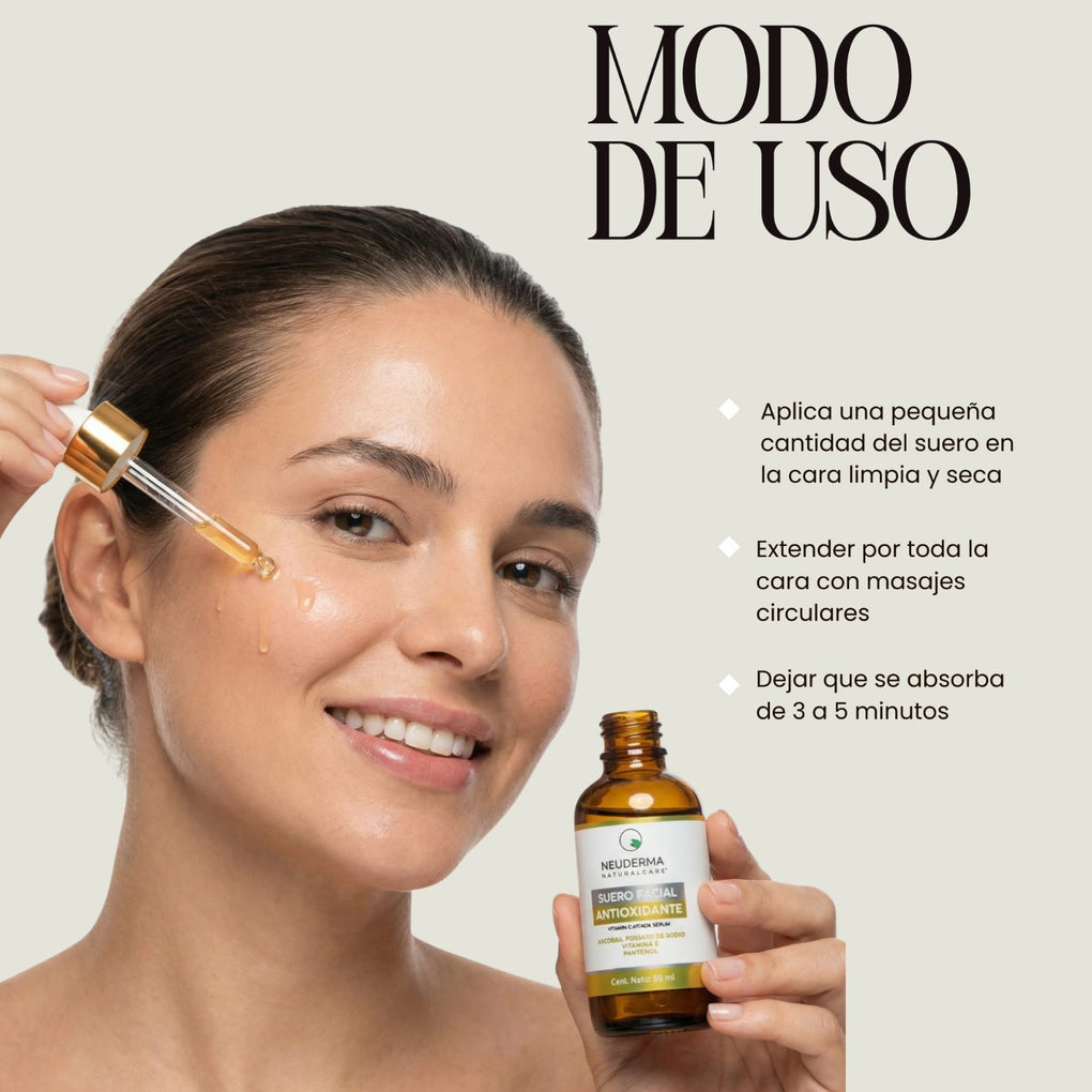 Suero Facial Antioxidante con Vitamina C + Ácido Hialurónico + Pantenol + Vitamina E
