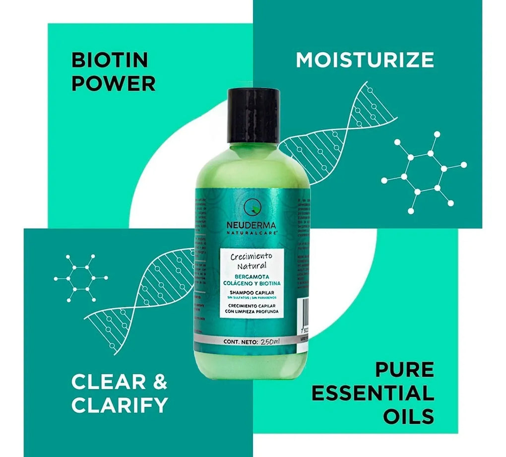 Shampoo de Biotina, Bergamota y Colágeno, Crecimiento Capilar